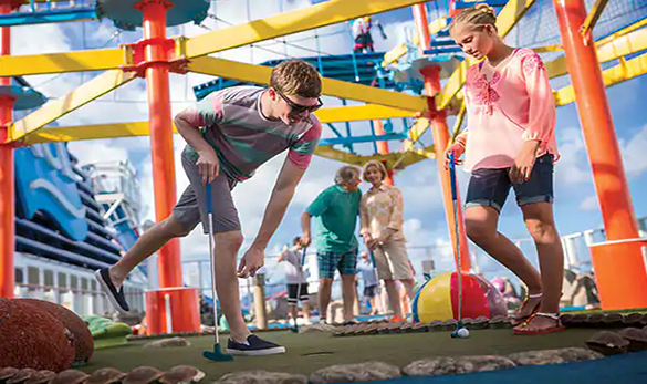 Play an exciting round of 9 holes on a Mini-Golf course in the middle of the ocean.