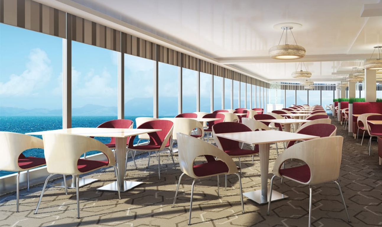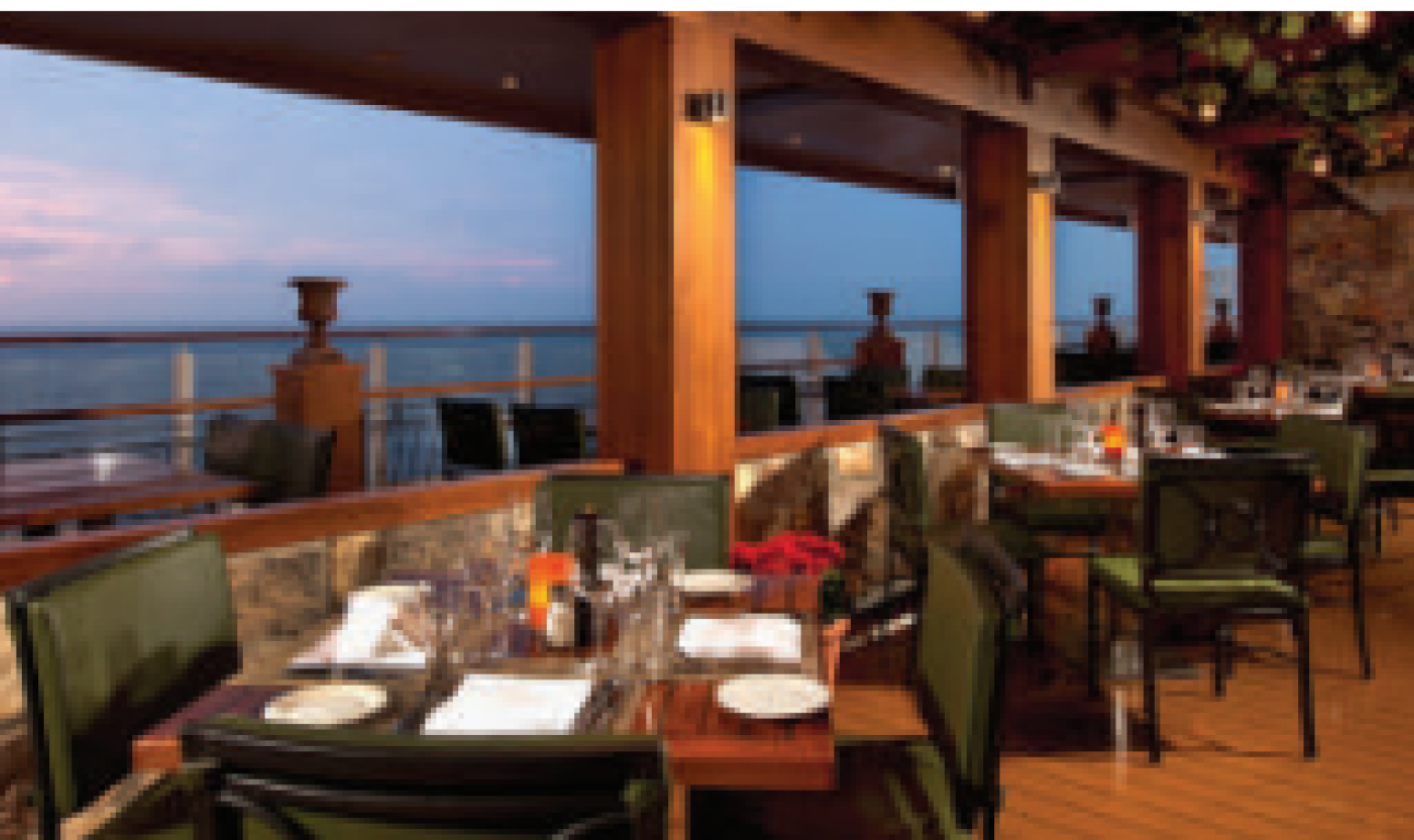 Whatever you’re craving, chances are you’ll find it at the Garden Café. This complimentary, indoor buffet-style restaurant serves up breakfast, lunch and dinner — and the floor-to-ceiling windows provide picturesque ocean views. Seating Capacity: 750 Indoor; 194 Outdoor